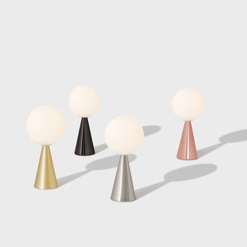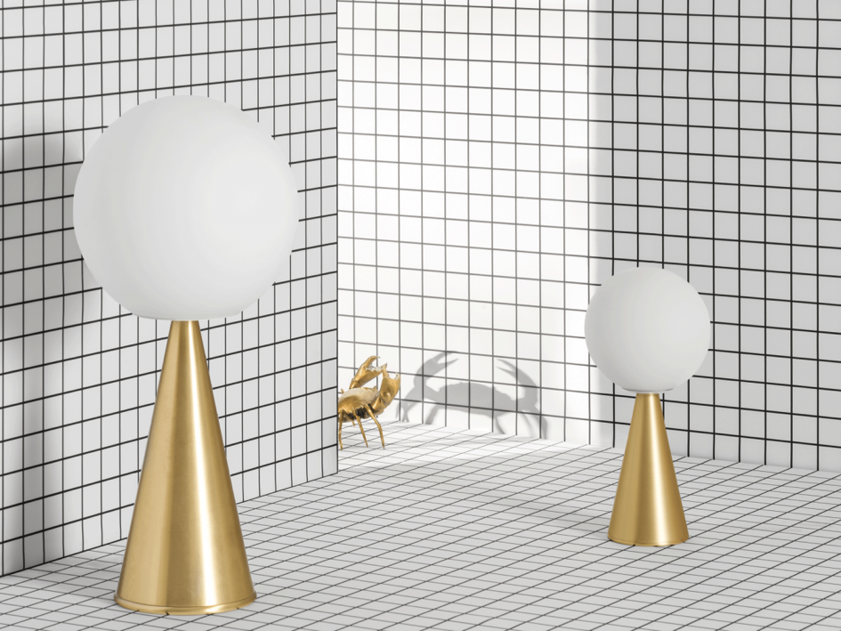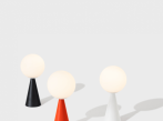 Koule a kužel, hlavní prvky této stolní lampy působí harmonicky. Dostupné i ve verzi LED.