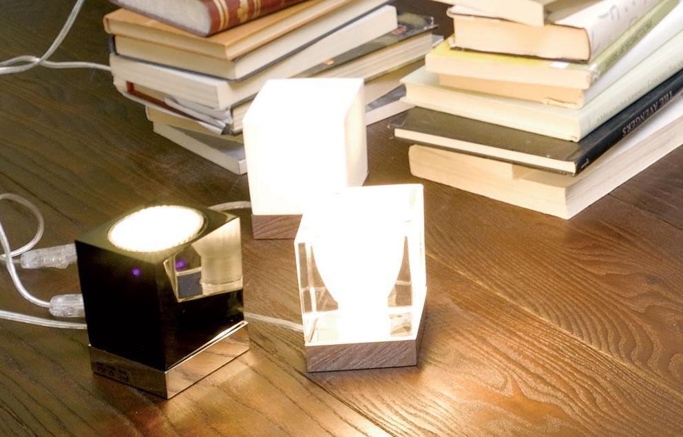 Stolní lampa Cubetto je příjemným doplňkem, který stylově zdobí prostor kolem ní. Dodává se s průhledným, černobílým difuzérem a má velmi rafinovaný a sofistikovaný vzhled. Je ideální pro noční stolek v ložnic, hotel nebo pracovní stůl.