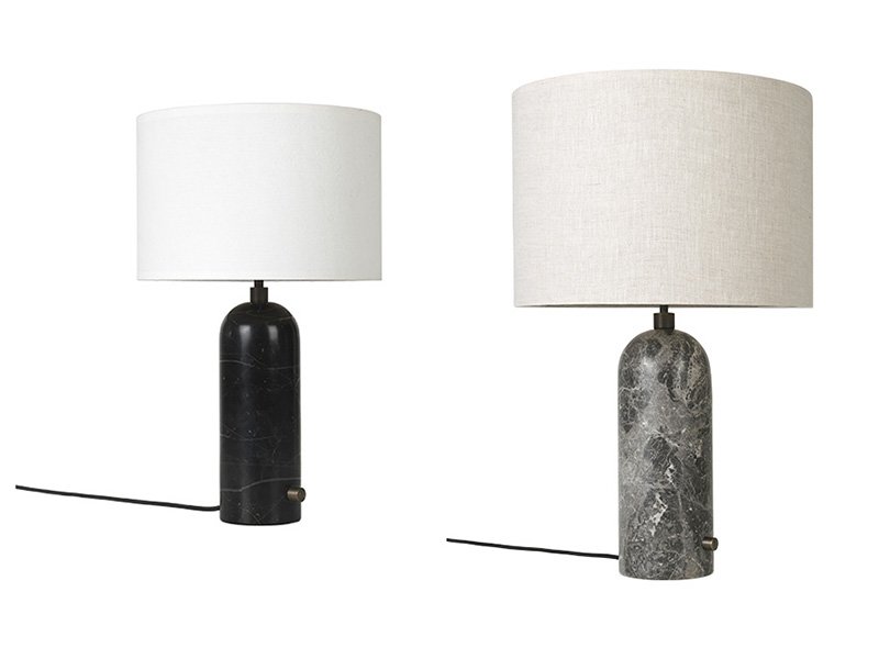 Stolní lampa Gravity Table je součástí stejnojmenné kolekce. Masivní válcovitá základna z mramoru či oceli je kombinována s lehkým a vzdušným textilním stínidlem v bílé nebo béžové barvě. Tvoří tak estetický kontrast mezi silou a křehkostí. Na dostatečně dlouhém přívodním kabelu se nachází stmívač pro snadné ovládání.
