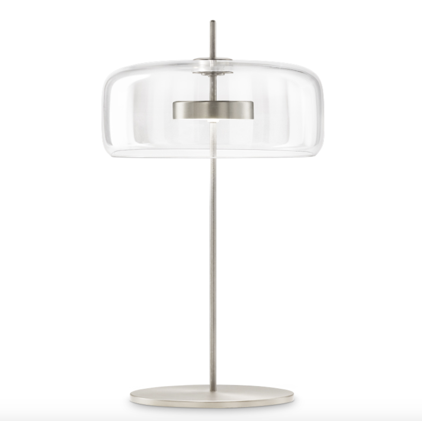 Elegantní a jemný vzhled foukaného skla nachází v Jube nový rozměr. Dvě skleněné jednotky umístěné vedle sebe, dokonale smontované, vypadají jako jedinečný kus. Výsledkem je lampa tvořená superpozicemi a barvami tón v tónu, které jí dodávají vzácnou, vintage náladu.