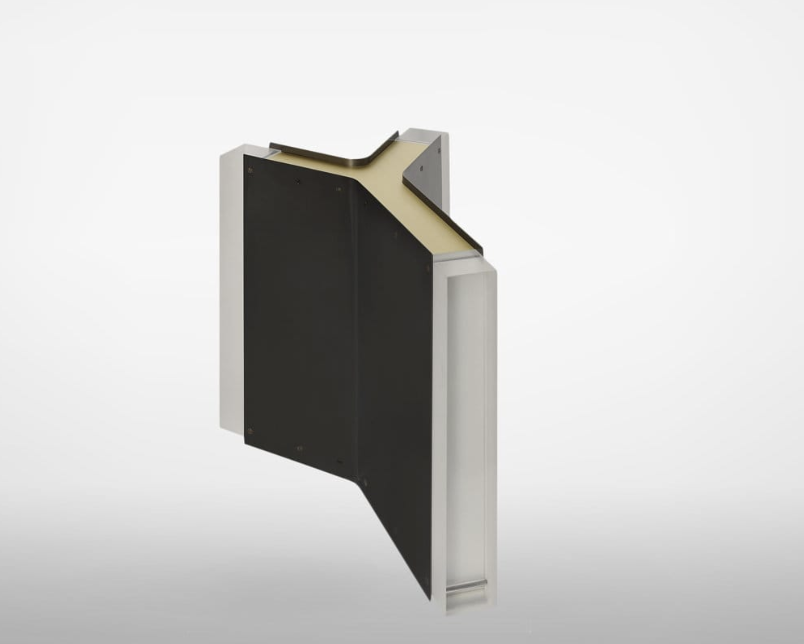 Stolní lampa Rayon s vysoce lineární podobou, která je tvořena dokonale tvarovaným difuzorem s ručně tvarovanou bronzovou částí.