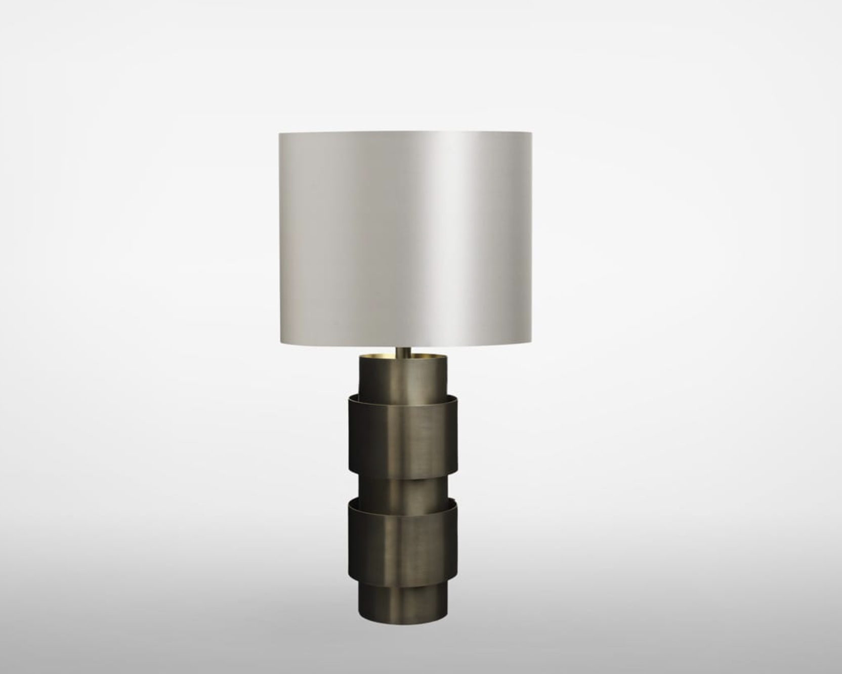 Stolní lampa Ring, inspirována silným světlem a stíny. Světlo zvýrazňuje rozdíly mezi velikostmi jednotlivých prstenců a dodává tak podstavci dramatický vzhled.