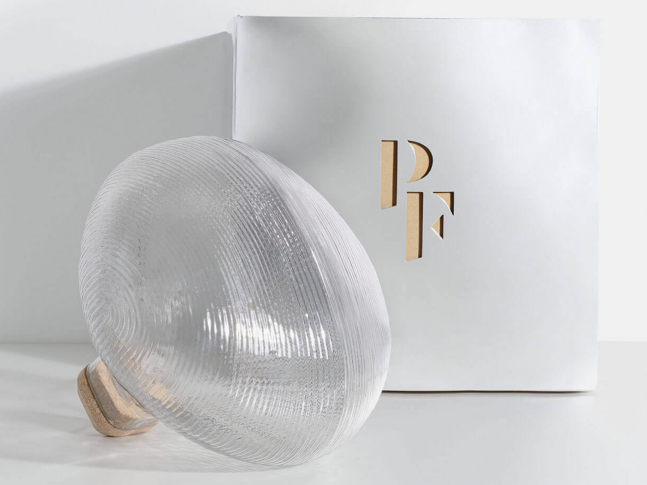 Ručně foukaná do formy, TIDELIGHT je sériově vyráběná lampa, v níž je každá kopie jedinečná. Texturované sklo, které připomíná kódy automobilového průmyslu, pokrývá žárovku a vytváří rozptýlené a teplé světlo.