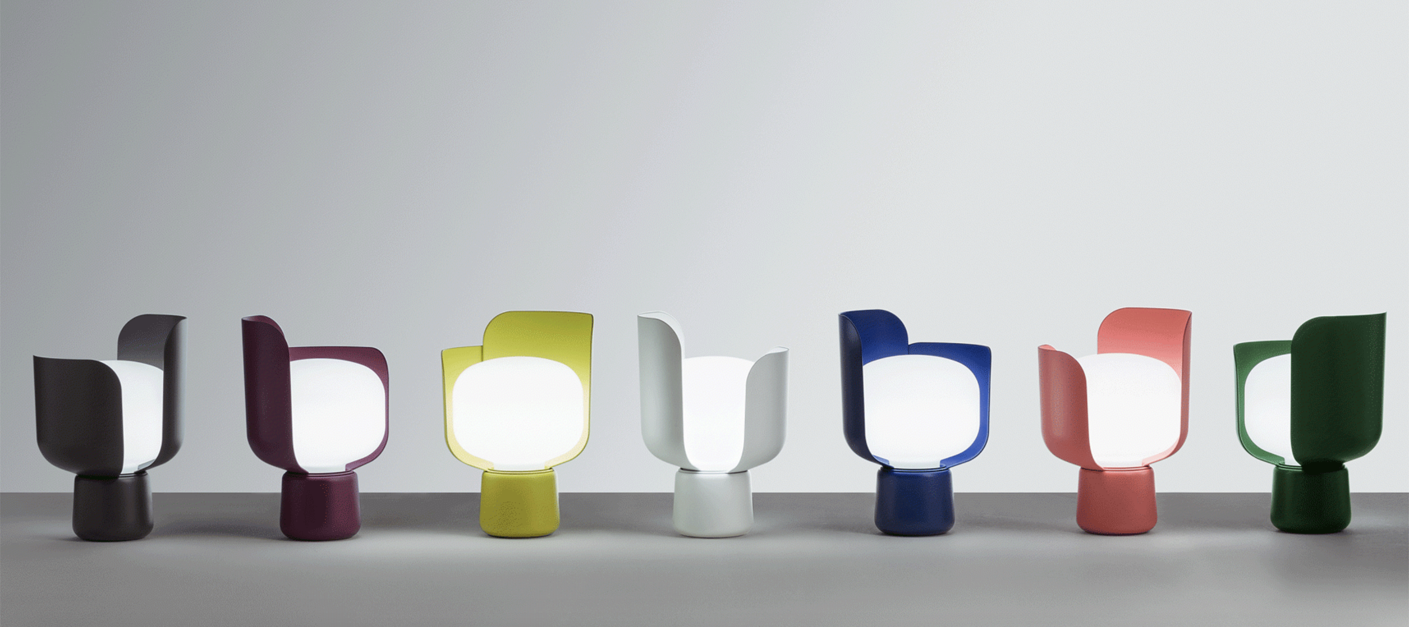 Blom je malá stolní lampa od norského designéra Andrease Engesvika, který si díky své schopnosti vštípit emoce, přitažlivost a nápady do každodenních předmětů udělal jméno na mezinárodní scéně. Blom je lehká a zábavná lampa, která zabírá jen velmi málo místa, je vysoká pouze 24 cm.