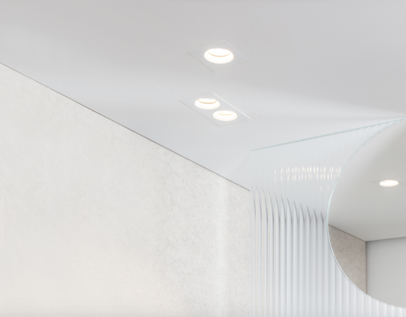 En-Suite poskytuje ambiciózní 120lm / W osvětlení s vnějším průměrem pouhých 54 mm a 50 mm výšky. Minimální recyklovatelné komponenty, efektivní využití materiálů a vysoce výkonná optika s nízkým oslněním.