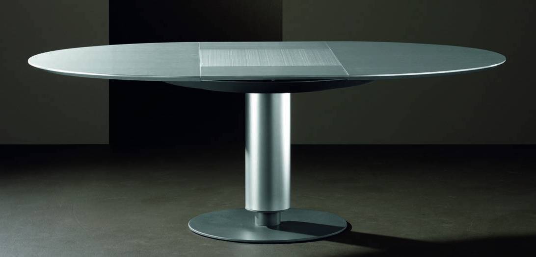 Tento oválný stůl můžete zvětšit pouhým posunutím listů od sebe. Prodlužovací listy jsou umístěny v přihrádce pod horním křídlem. Zatlačíte na ně, listy přijdou a vyklopíte je.