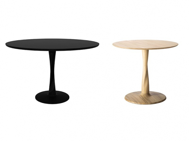 Stůl Torsion představuje eleganci a nadčasovost. Je vyroben z masivního dubu pokročilou technikou zpracování v přírodním nebo černě barveném dokončení. Středová noha působí neustále rotujícím dojmem, díky originálnímu vyřezávání. Základna i jídelní deska jsou zaoblené s kónickými hranami. K dispozici ve třech odlišných velikostech.