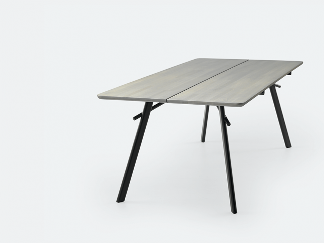 Masivní buková deska stolu LX647 je k dispozici ve třech různých délkách od 200 do 240 centimetrů. Ocelový rám je vyroben z laserem řezaných trubek, které dokonale zapadají do sebe sofistikovaným způsobem.