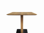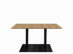 Vysoký stůl s dřevěnou deskou a kovovou podnoží. Dostupný v několika velikostech a tvarech.