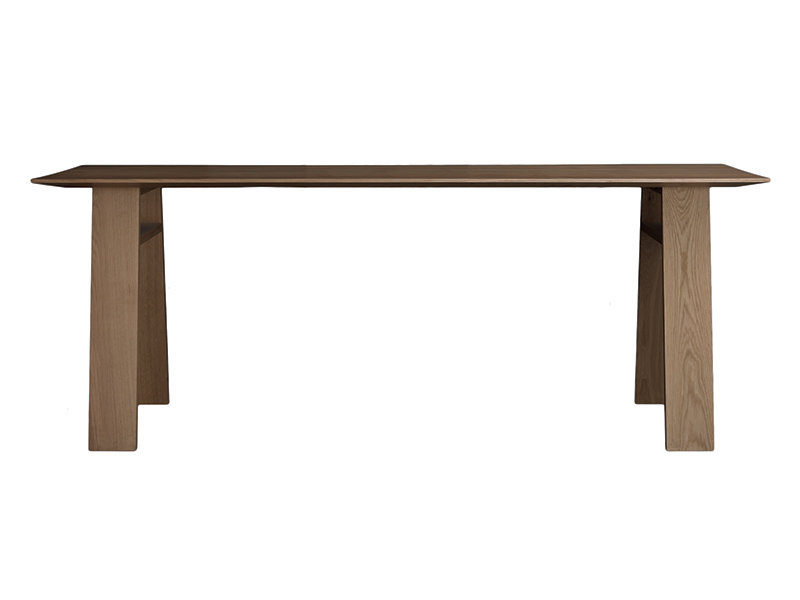 Jídelní stůl z kolekce Bondt obdélníkového tvaru. Výjimečné zpracování masivního dřeva s důmyslnými konstrukčními detaily – subtilní deskou šíře 28 mm, opticky působící 12 mm a atypická podnož z plochých dílů. V kolekci Bondt naleznete širokou škálu jídelních stolů, odkládacích a konferenčních stolků.