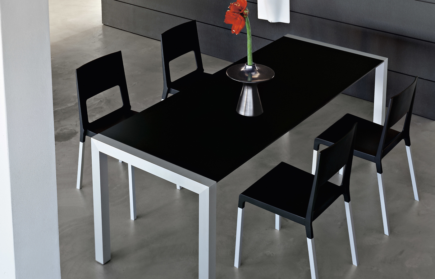 Sushi je kolekce, která vytváří jednotný velice elegantní design pro fixní a rozkládací stoly. Stoly vynikají tenkostí desky a její pevností. Desku může tvořit sendvič hliníkových plechů a lamina Alucompact, deska pak zůstává extrémně pevná po celé délce a přesto není narušen její elegantní vzhled. Rozšiřující desky jsou jednoduše uloženy v mělkém prostoru pod hlavní deskou.