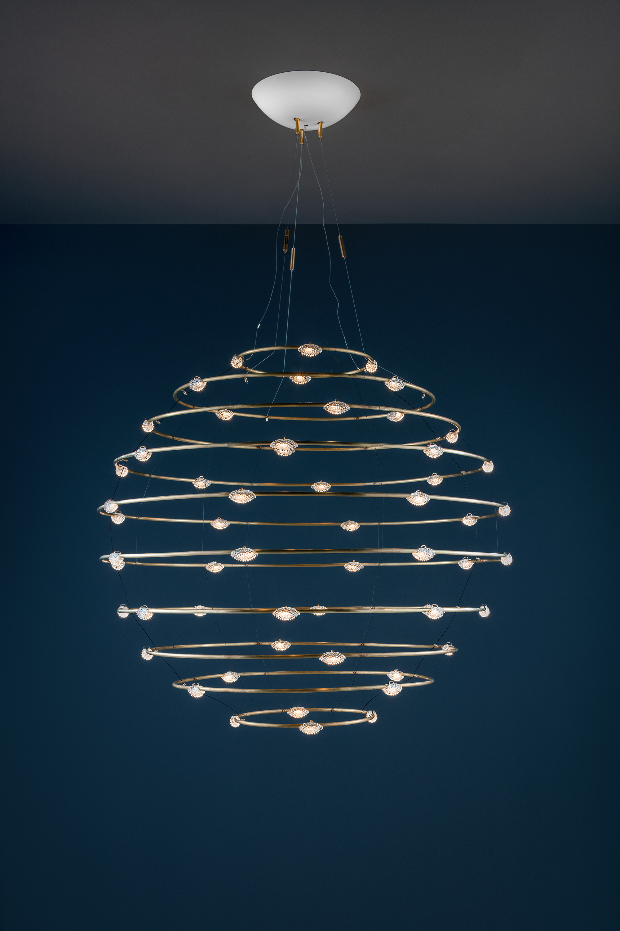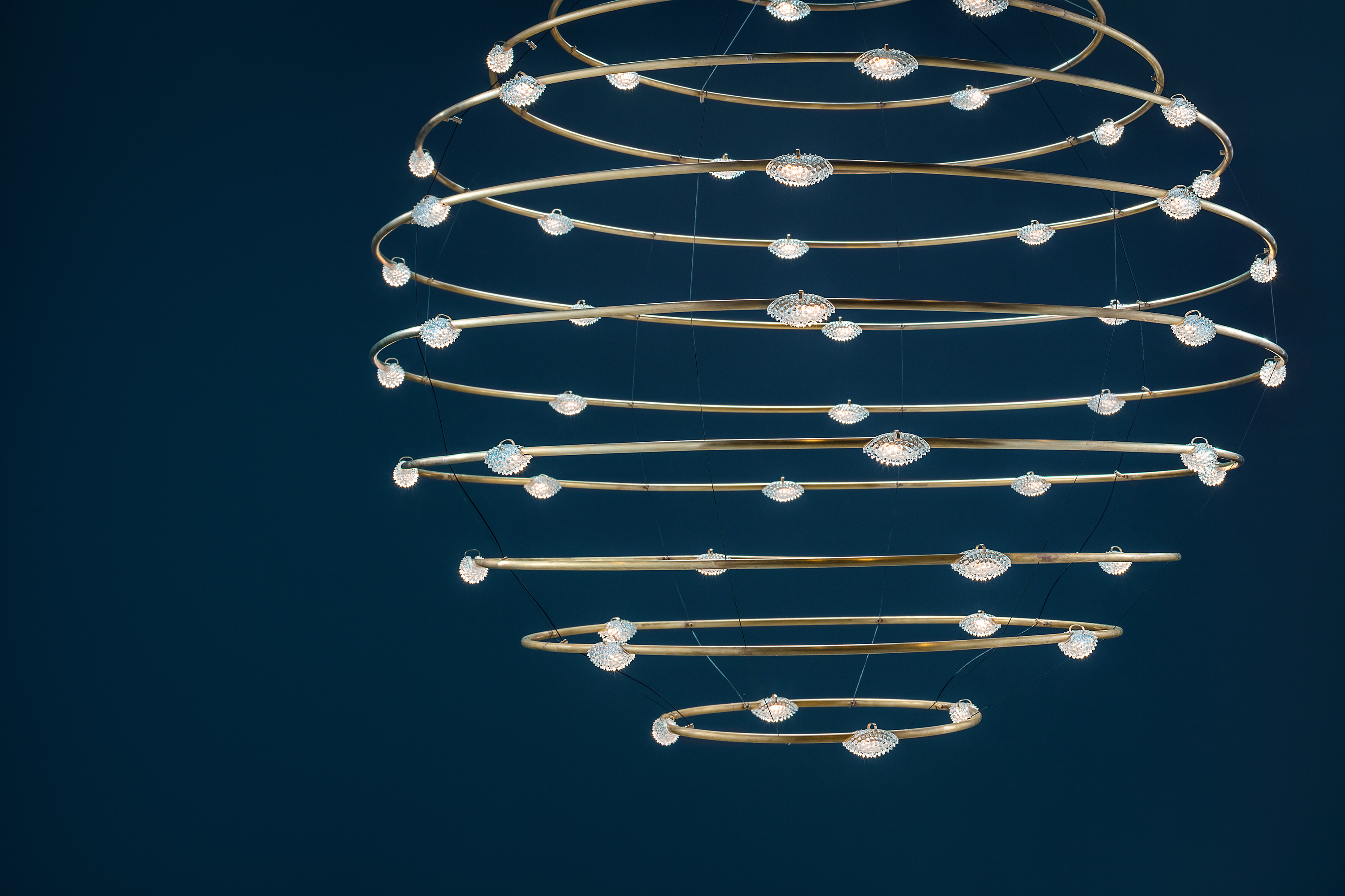 Svítidlo 56 Petits Bijoux reprezentuje „statický pohyb“, účinek akce, která napodobuje gesto házení kamenem do kaluže vody a vytváří soustředné vlny, které se šíří do vesmíru. Pojem koule a kruh jako metafora pro nekonečnou a dokonalost