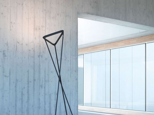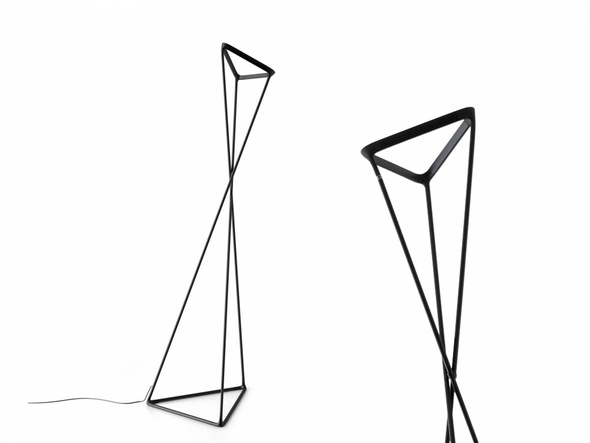 Inovativní stojací lampa pro nepřímé osvětlení. Na trojúhelníkové ocelové základně je konstrukce složená ze tří hliníkových podpěr. K dostání ve více barevných variantách.