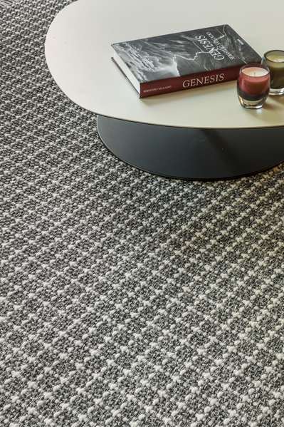Jde o sisalovo-vlněný koberec v kombinaci 80 % sisalu a 20 % vlny. Má drobný geometrický motiv, který koberec zajímavě oživuje. Je k dispozici v 5 přírodních odstínech a je vhodný i pro používání kancelářských kolečkových židlí.