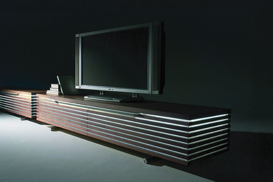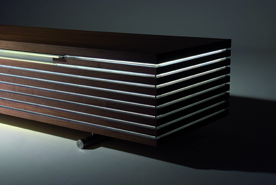 Televizní skříňka z kolekce Tosai, firmy Conde House, vyniká svou jednoduchostí a funkčností. Rám je vyroben z masivního dřeva uvnitř se zabudovaným LED světlem, které vytváří zajímavý světelný efekt v interiéru. Podnoží je vyrobeno z kartáčované oceli. Na výběr je možnost kombinace zásuvky či vyklápěcích dvířek. Lze vybírat ze dvou velikostí.