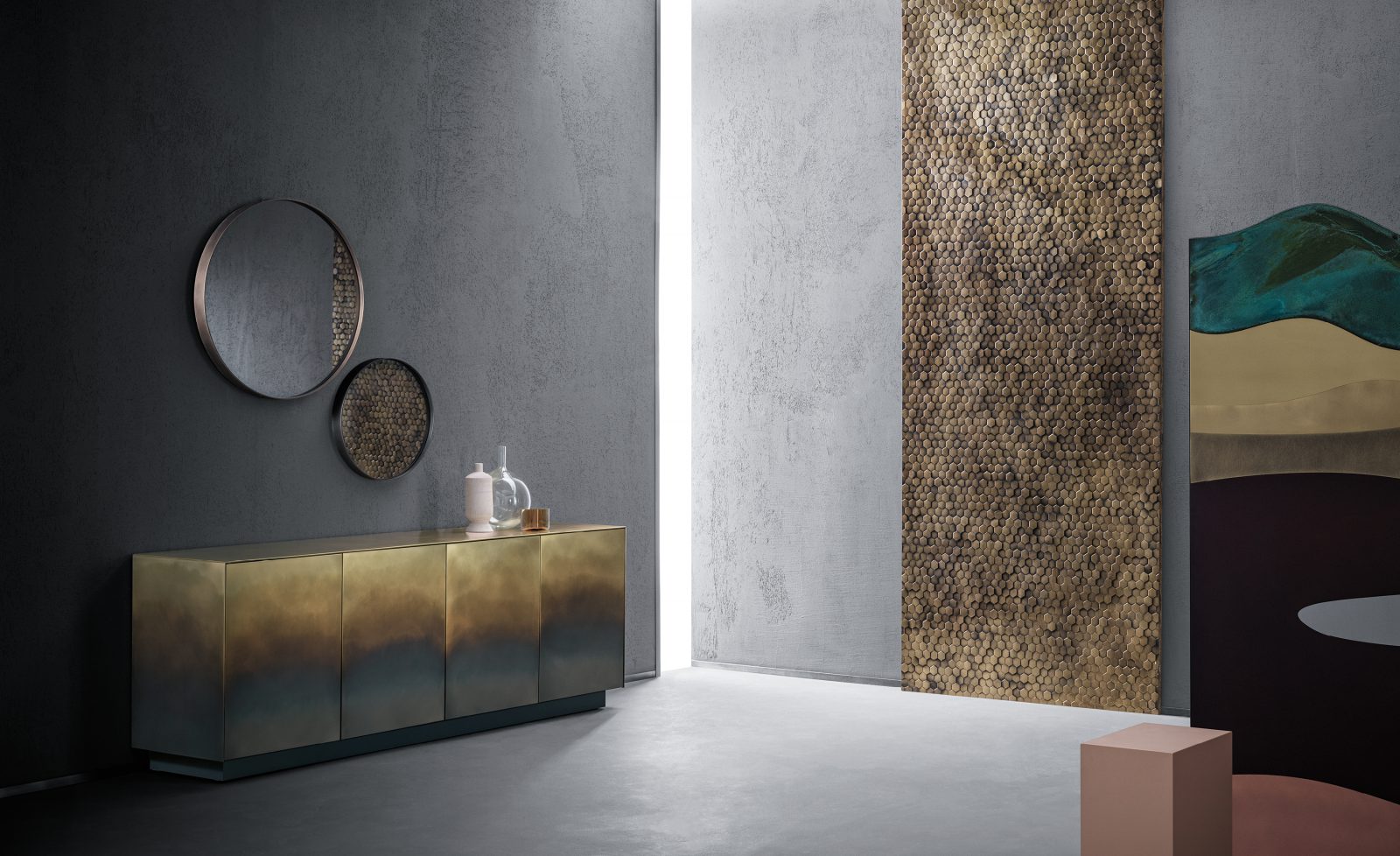Komody Marea jsou speciální díky oxidaci, díky které získávají obrazový efekt, který se podobá erozi vodu na materiálu. Na půli cesty mezi designovým objektem a uměleckým dílem představuje každá část kolekce, skládající se z komody, příborníku a skříňky, jedinečný zcela ručně vyrobený kus nábytku.
