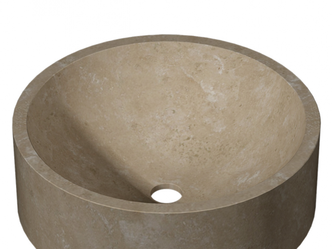 Toto kulaté umyvadlo je vyrobeno z přírodního kamene a je navrženo s jemnými hranami, díky nimž je sofistikované a rafinované.