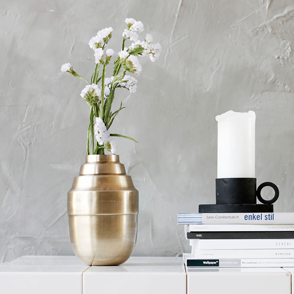 Váza Pyram vyrobená z mosazi má jednoduchý, avšak efektivní design. Dekorativní i funkční objekt vynikne na stole či polici a dodá interiéru jedinečnou eleganci.