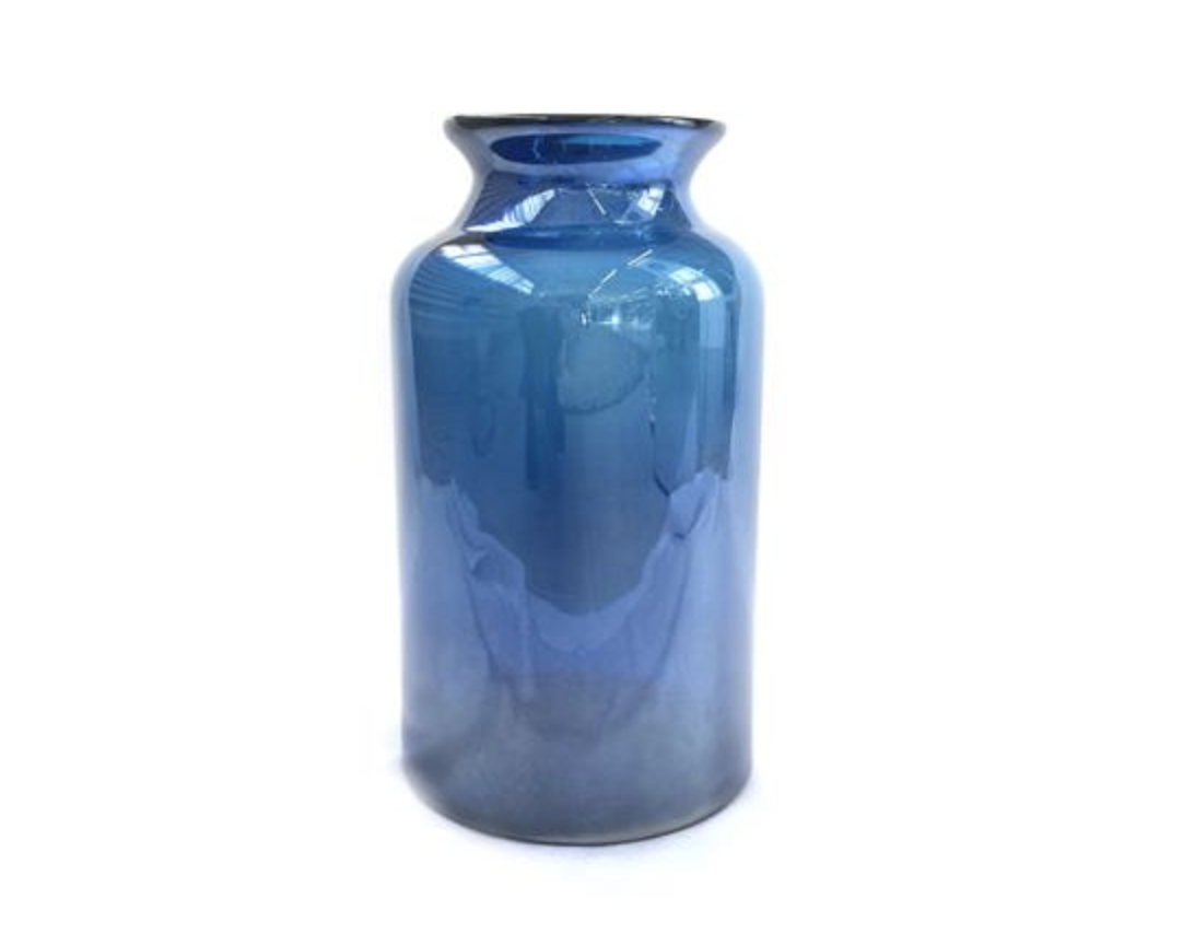 Skleněná váza ve tvaru širšího válce v krásné modré barvě. EDG - ENZO DE GASPERI je přední italská společnost, která vyrábí dekorativní a designové předměty s elegancí.