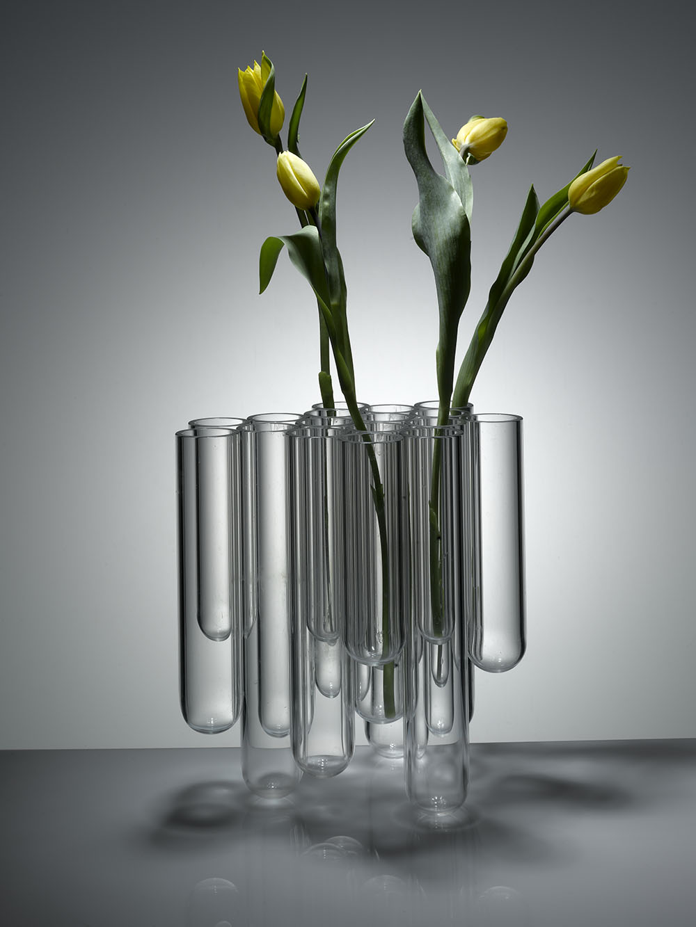 Význam slova symposium je dialog nebo setkání. Koncept této vázy je založen na spojení skleněných trubic různých délek do nápaditého seskupení. Výsledkem je artefakt sloužící jako váza. Symposium poskytuje možnost aranžovat květiny pro různé příležitosti, soukromé nebo firemní oslavy, oživí i prostředí kanceláře nebo restaurace. Jednotlivé květiny mají svůj zdroj vody, čímž vydrží déle čerstvé.