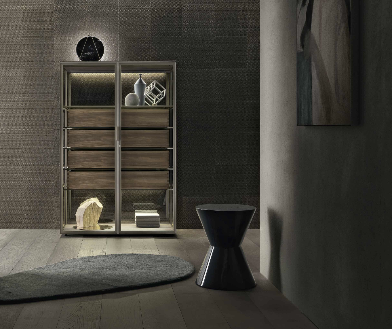 S tímto produktem poskytuje Rimadesio moderní interpretaci klasického nábytku, jako jsou příborníky, skleněné skříně a zásuvky. Kolekce charakterizovaná zvláštní strukturou z hliníku, exkluzivními konstrukčními detaily, mechanismy pohybu a policemi vybavenými integrovaným led osvětlovacím systémem.