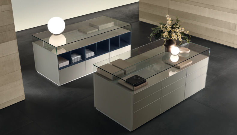 DOLMEN je systém volně stojících vitrín, které se hodí do kteréhokoli prostoru. Konstrukce jsou zcela ze skla, v široké škále barev. DOLMEN má jedinečný oddíl v 10 mm plovoucího skla, které umožňuje pohodlné, viditelné skladování.