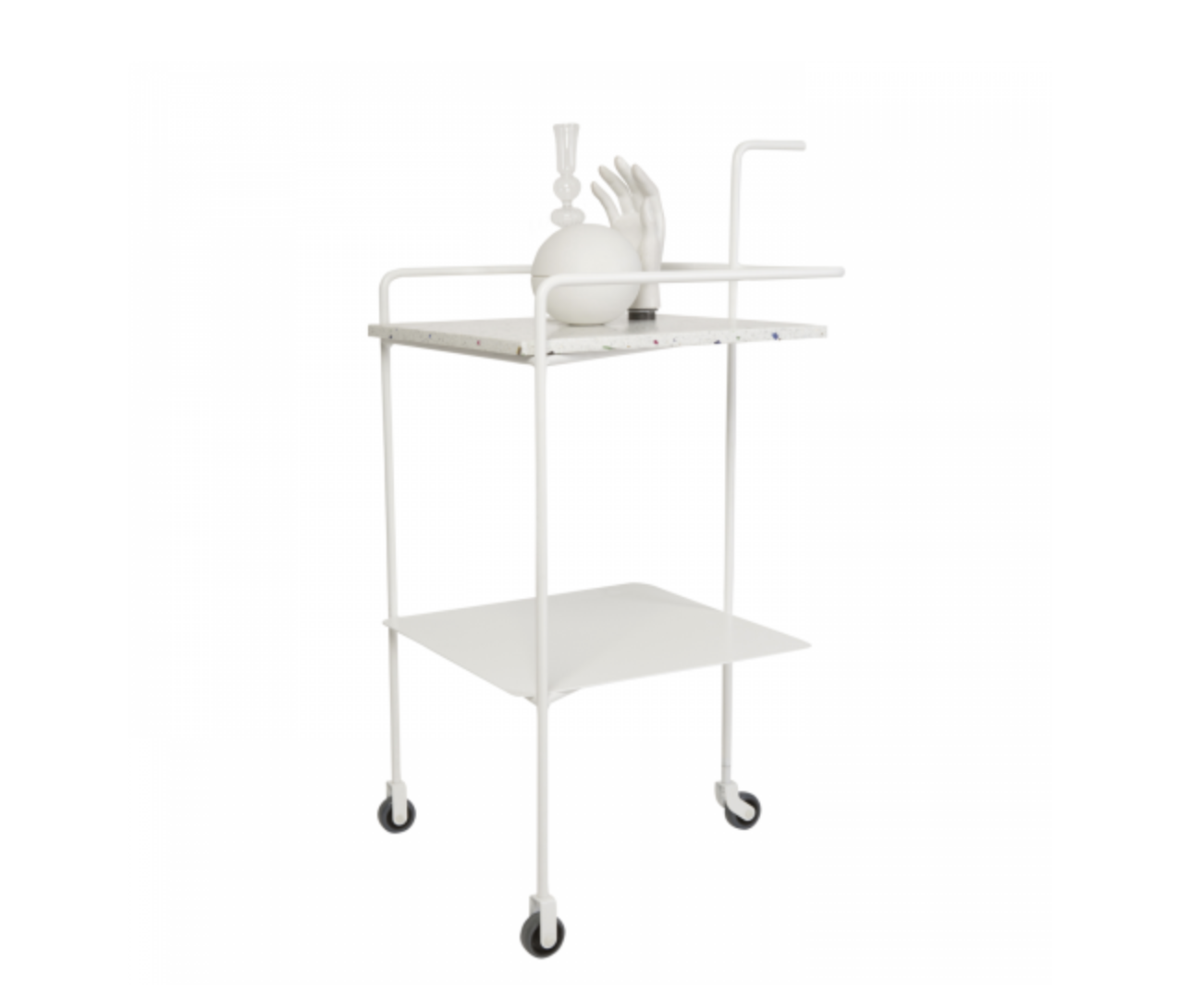 Confetti Trolley je reinterpretací klasického vozíku na nápoje z poloviny minulého století od turecké architektky a designérky Deryy Arpac. Design spojuje horní část Terrazzo s ocelovým rámem.