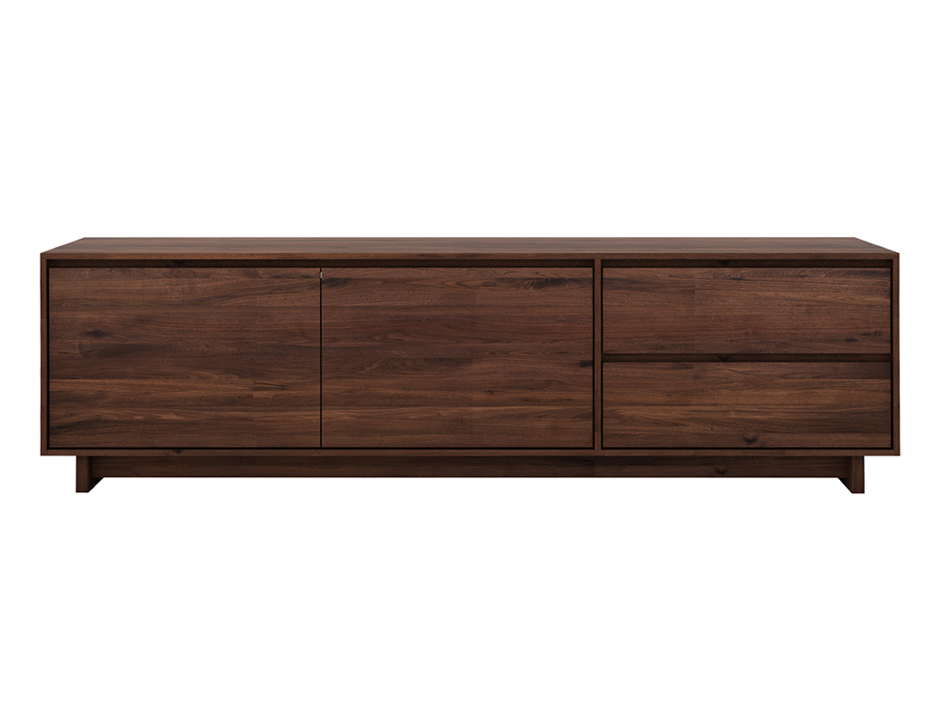 Nenápadné obrysy dvířek skříně a výrazný tvar nohou jsou tím, co dělá kolekci Wave speciální. Dveře a zásuvky neobsahují žádné úchytky a mají měkký zavírací mechanismus. Tato televizní skříňka je vyrobena z ořechu a je také k dispozici v dubu a teaku.