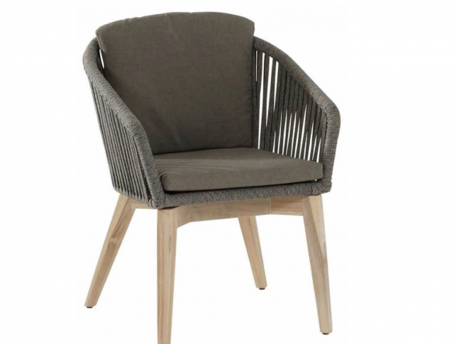 Zahradní židle Santander Chair výrobce 4Seasons Outdoor vyrobená z týkového dřeva, lakované oceli, hliníku a polyesteru.