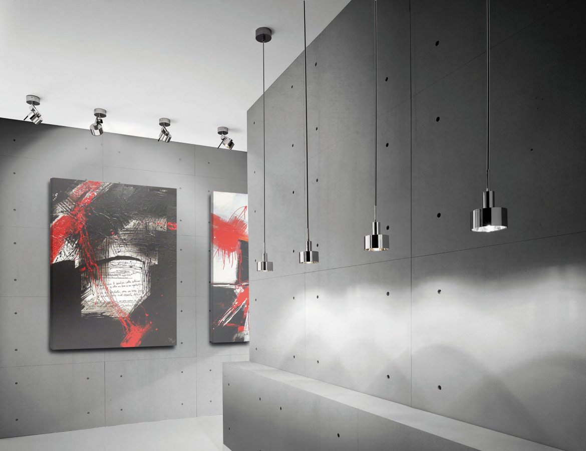 Kolekce skládající se ze stěnových, závěsných a podlahových svítidel s chromovaným povrchem. K dispozici v několika velikostech.