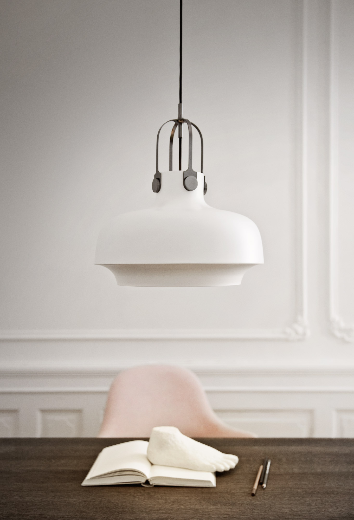Při návrhu závěsné lampy Copenhagen se její autoři ze studia Space Copenhagen inspirovali starými námořními plynovými lampami. Výsledkem moderní stylizace je nádherné industriální svítidlo, pohravající si s kontrastem dvou kovových materiálů - matně lakovaného stínítka a lesklého ocelového uchycení. K dispozici také ve větším rozměru.