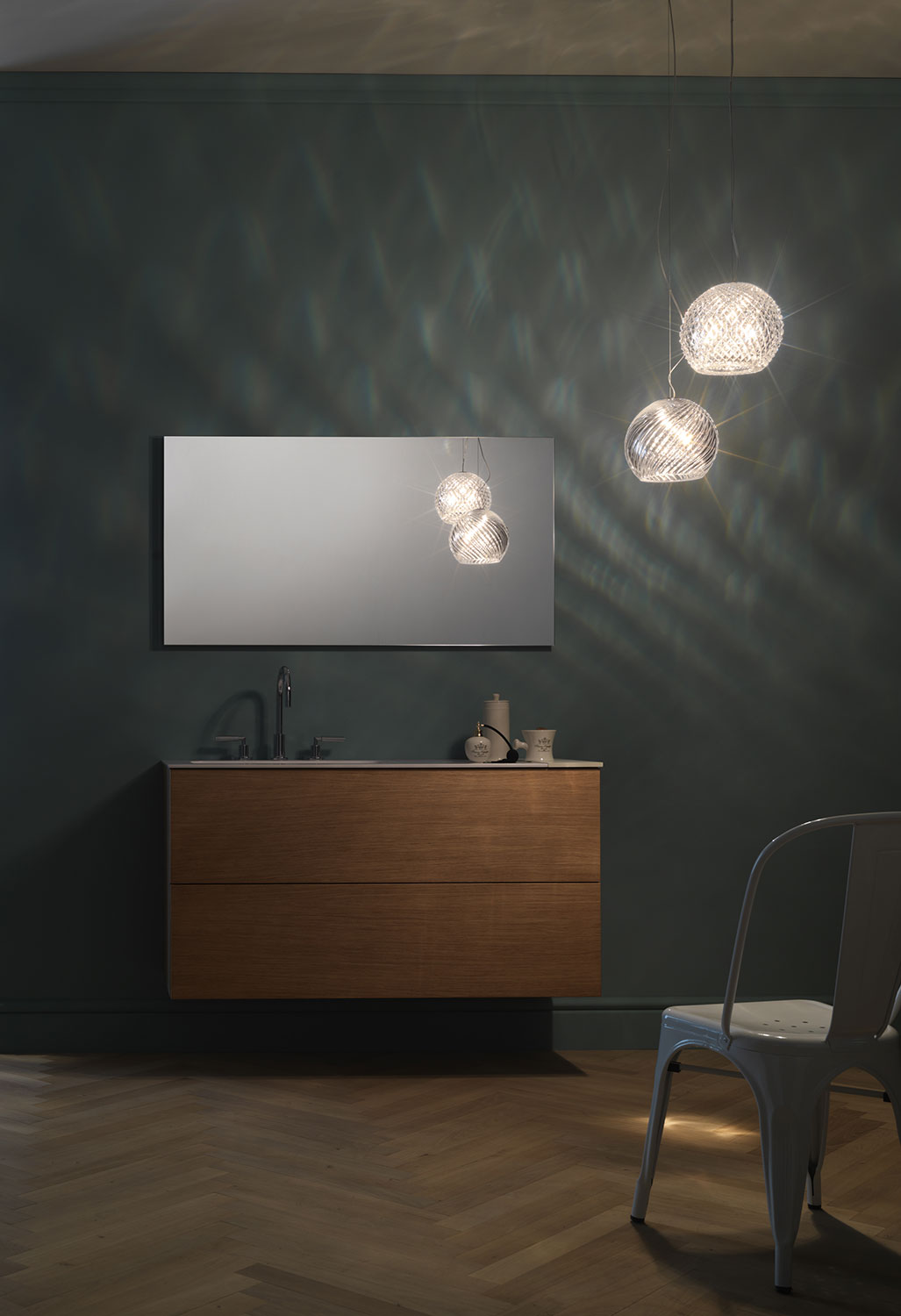 Závěsná lampa Diamond & Swirl je velmi elegantní lampa, která dodává stylu a dává hodnotu okolnímu prostředí. Difuzory jsou ve výběru ze dvou různých provedení a dvou různých velikostí a používají halogenovou žárovku, která vytváří jedinečné světelné efekty skrze krystal.