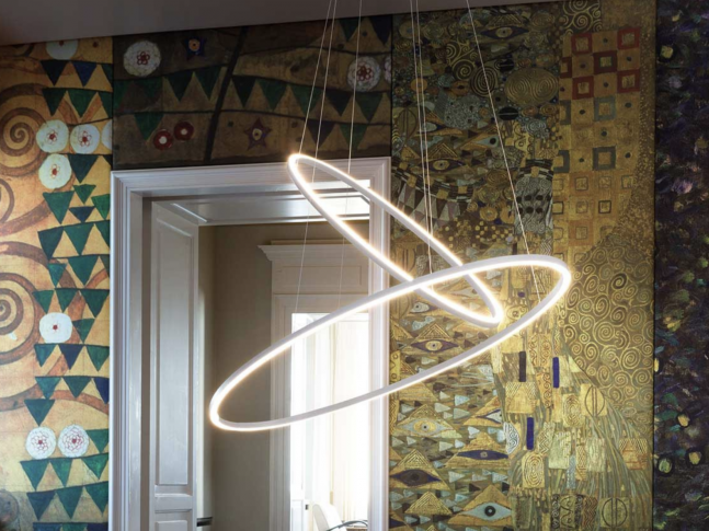 Závěsná LED lampa, dostupná ve třech verzích: major, minor a double, přímé nebo nepřímé osvětlení. Extrudovaný hliník, matně bílý, matně černě lakovaný, leštěný nebo lesklý elox.