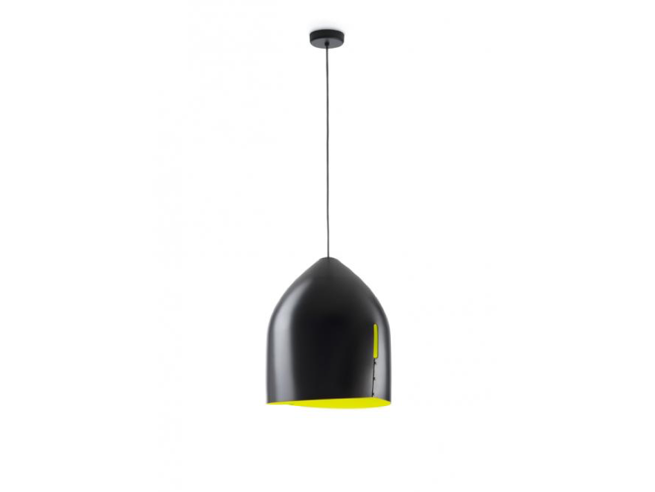 Závěsná kovová lampa je dostupná v různých velikostech a barevných provedeních.