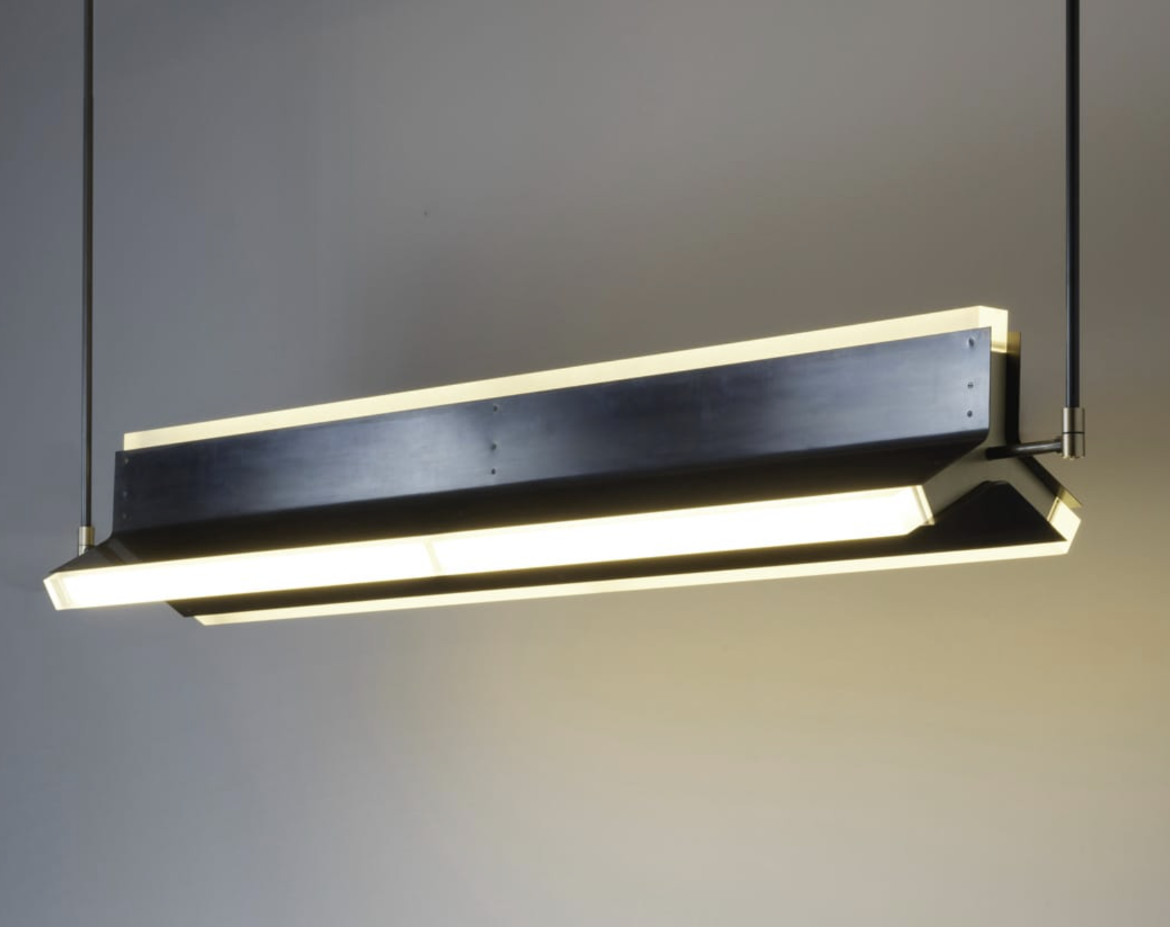 Závěsná lampa Rayon, kterou navrhnul francouzský designér Stephane Parmentier, s dokonale tvarovaným difuzorem, který perfektně doplňuje lineární tělo.