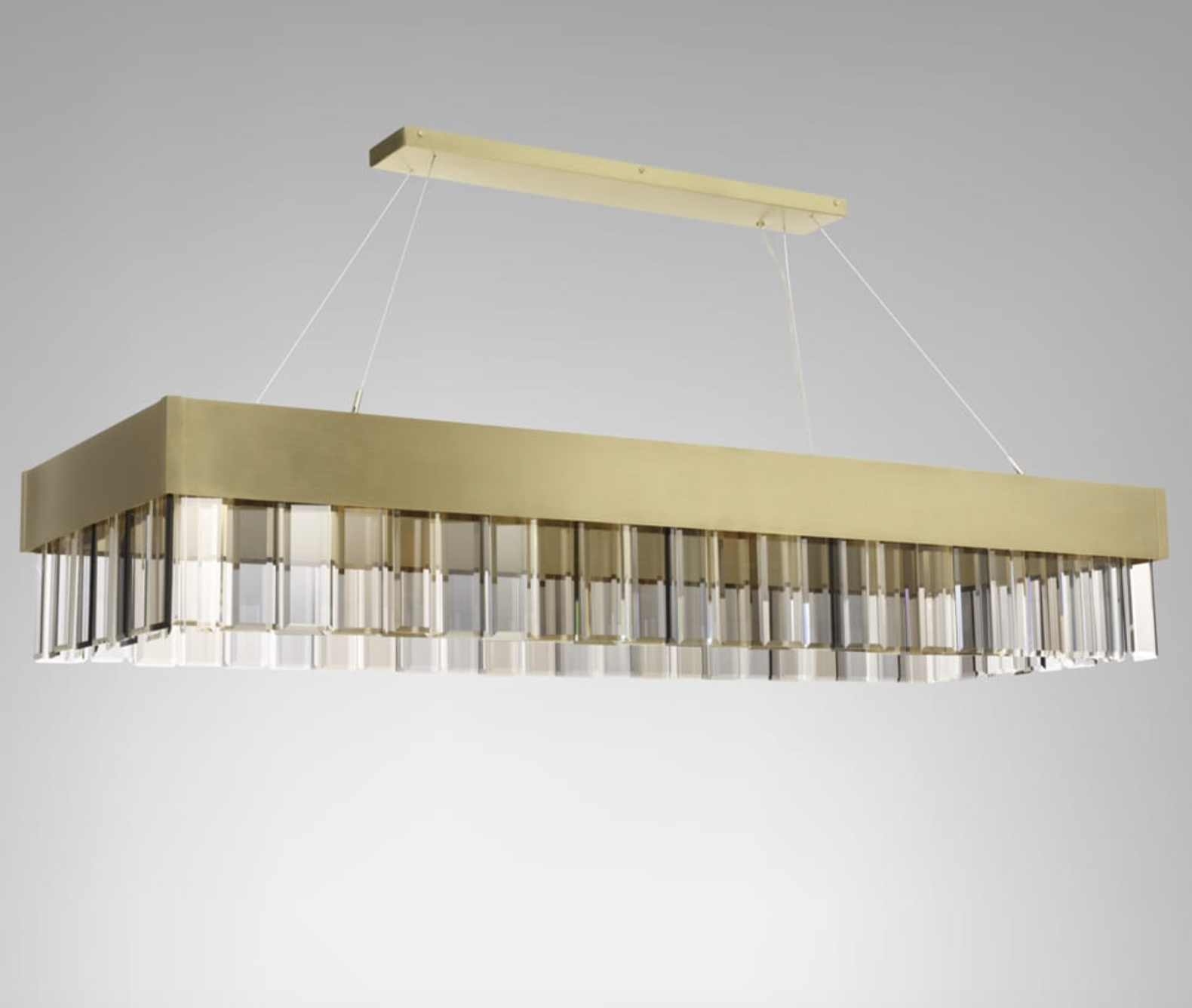 Broušené sklo, které je upevněno po obvodu mosazného těla, je vyrobeno z kombinace čirého a zakaleného skla bronzové barvy. Tento lustr je také možno přizpůsobit na míru.