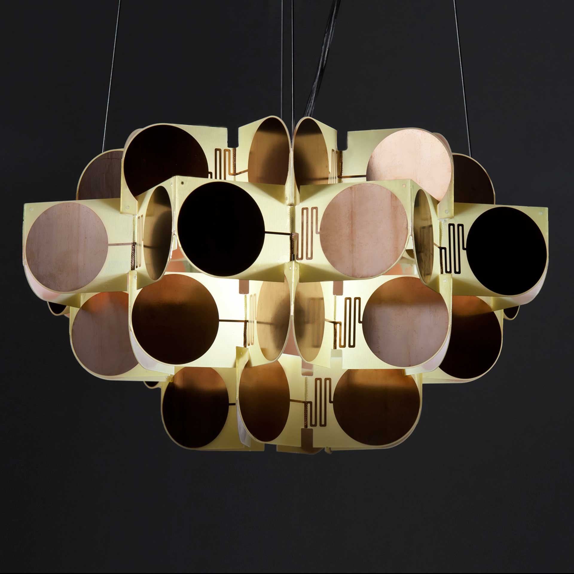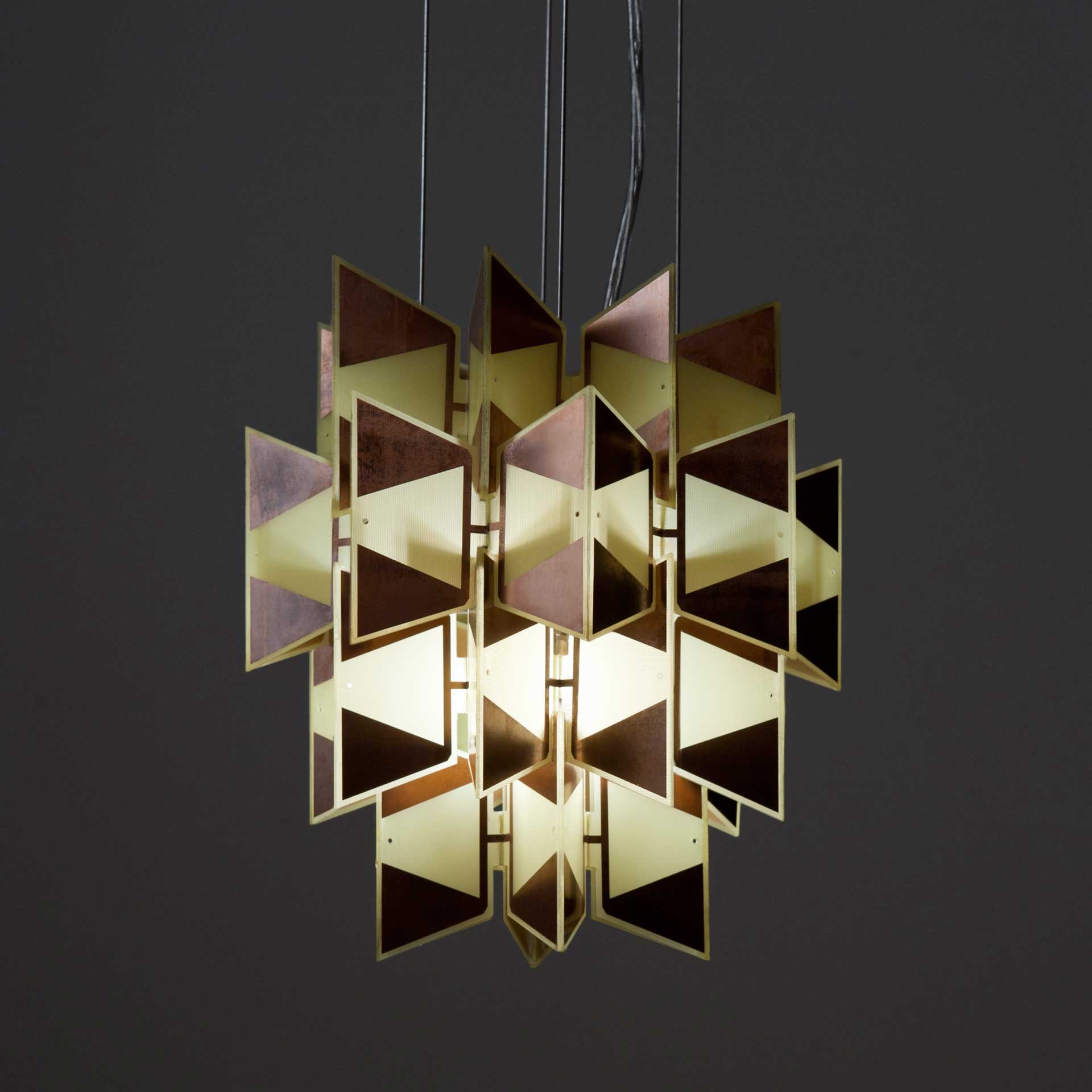 Svítidla Neokubista a Neorondokubista jsou vyrobena ze 28 ks recyklovaných plošných spojů, nerez terče a ocelových lanek. U stropu se zavěsí pomocí očka na hák. Délka lanek je na nastavitelná, max. délka 2,5 m. Typ žárovky: halogen 75 W součástí balení Stínidlo Neorondokubista – průměr: 34 cm, výška: 19 cm Stínidlo Neokubista – průměr: 22 cm, výška: 25 cm