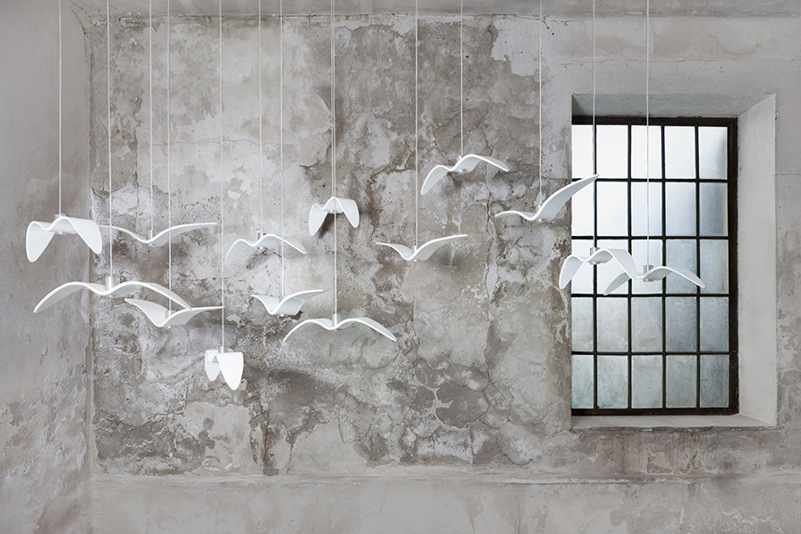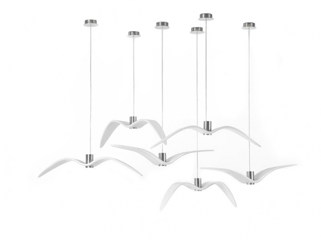Závěsné svítidlo Night Birds je inspirováno volností a svobodou ptačího letu. Světla v prostoru jen nevisí, ale doslova létají. Stejnou svobodu vám dají i při utváření variabilních kompozic sestávajících z několika světel až po velká hejna. Skleněná stínidla ve tvaru křídel v různé fázi letu spolu s příjemným, měkkým led osvětlením dotvoří atmosféru vašeho oblíbeného místa.