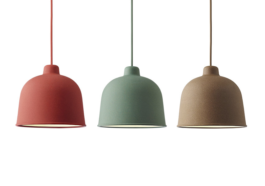 Závěsné svítidlo Grain značky Muuto kombinuje minimalistický vzhled s využitím inovativních materiál. Matné stínidlo je vyrobeno ze směsi polypropylenu a bambusových vláken, které na širmu vytváří strukturu. Grain je dodáván v šesti různých barvách, s vysoce kvalitní LED diodovou žárovkou, která dodávámá životnost cca 10.000 hodin a bílou stropní krytkou.