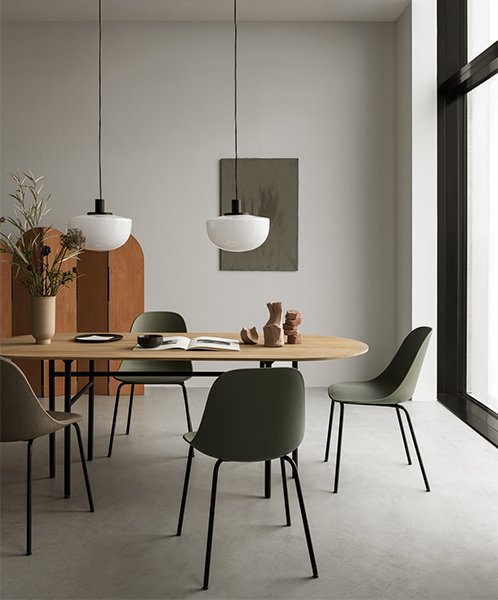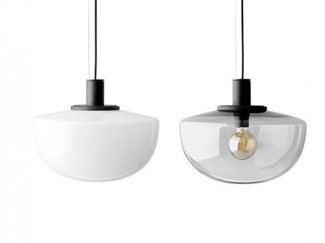 Závěsné svítidlo Bank je inspirováno nečekanými místy. Při návštěvě designérů Norm Architects New Yorku je uchvátilo závěsné osvětlení ve vintage stylu. Nadčasové svítidlo je ručně vyrobeno foukaným sklem, proto je každý kus originál a lze volit mezi kouřovou nebo opálovou barvou.
