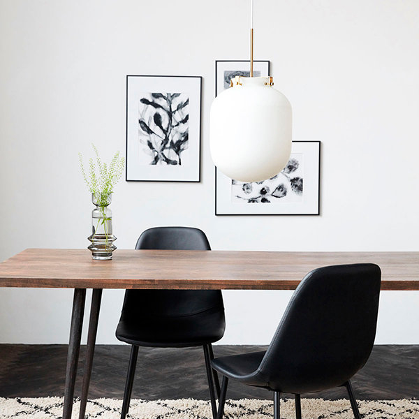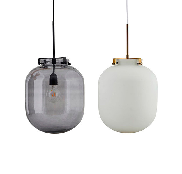 Závěsné svítidlo Ball představuje minimalistický design s původním rázem. Skleněný širm, dostupný ve dvou barevných provedeních, je uchycen kovovými sponami vedoucími ke středu závěsu. Dodáváno s 1,6 m kabelem. Žárovka není součástí balení.