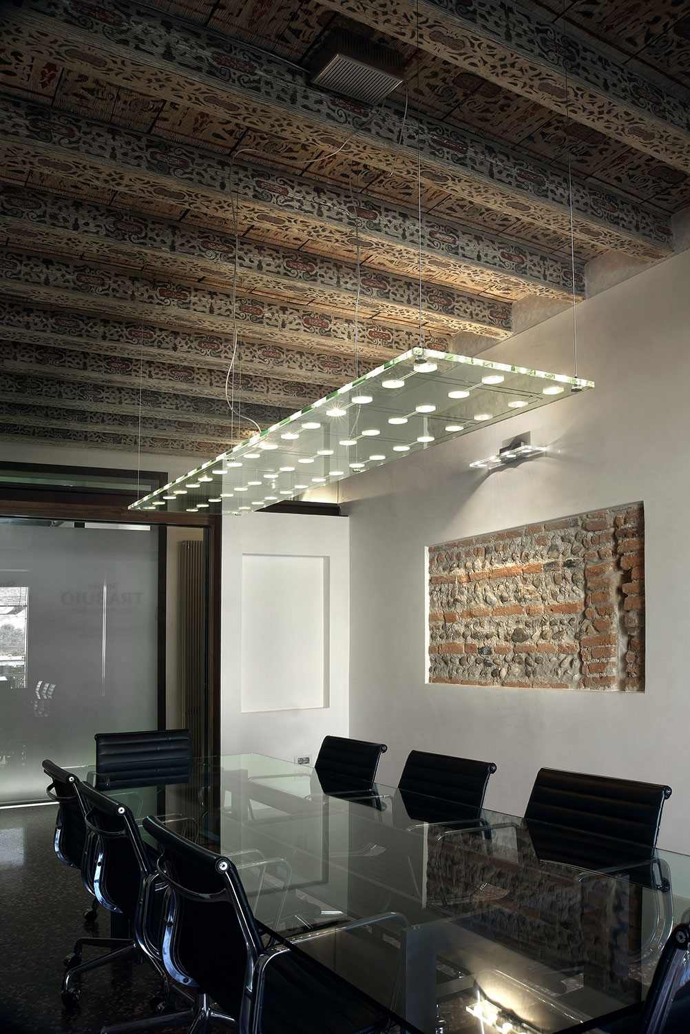 Rafinovaná závěsná lampa Sospesa používá halogenové nebo integrované LED žárovky, vydávající světlo, které se jemně šíří po celém okolí. Tato lampa je k dispozici v různých velikostech, od jednoho do tří metrů, je vhodná do domácnosti i do komerčních prostor.