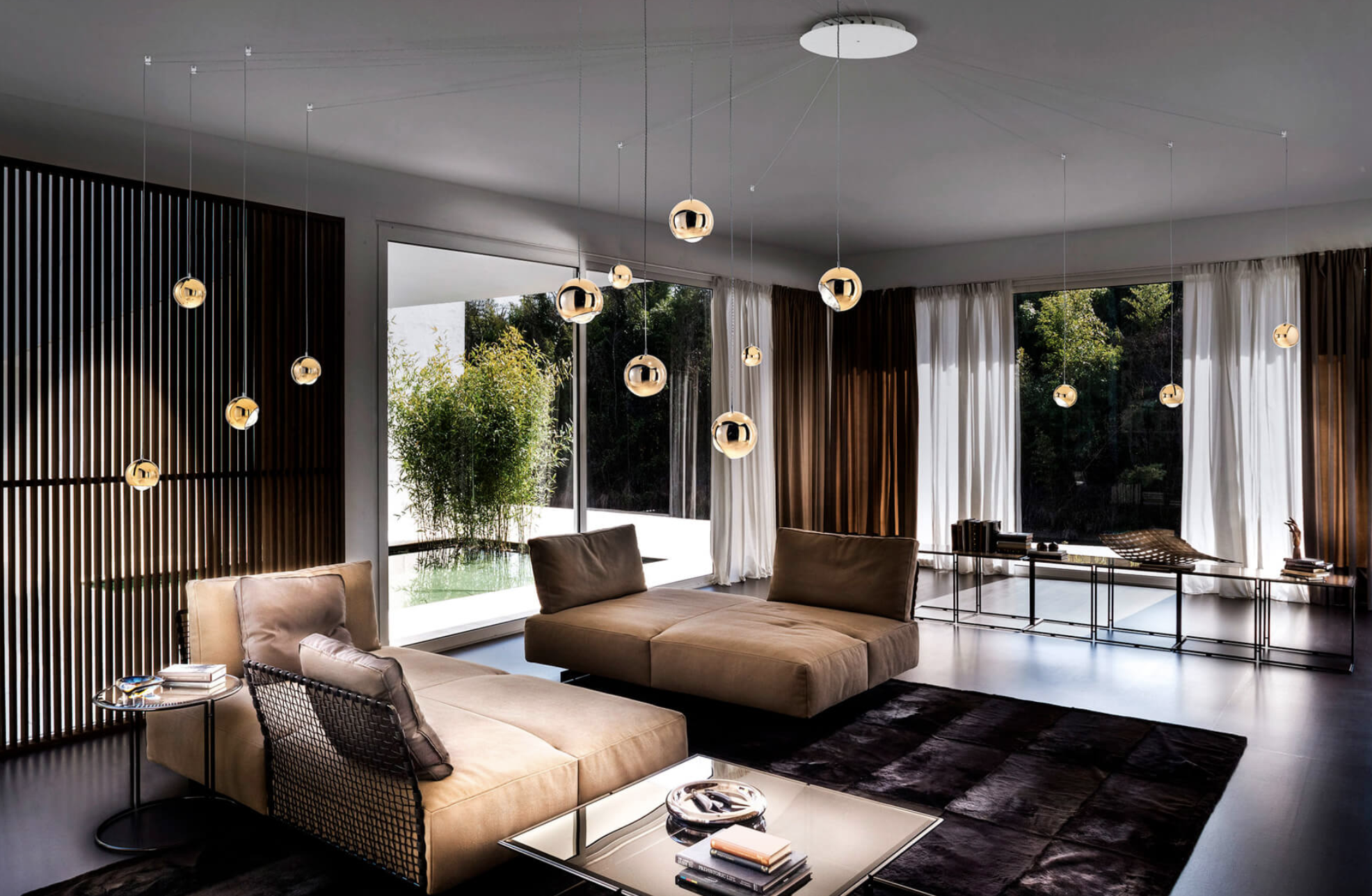 Závěsné svítidlo Spider, se kterým můžete vytvořit nespočet kompozic s různými světelnými efekty. Každé tělo světla lze nasměrovat tak, aby se svítilo tam, kam je potřebujete.