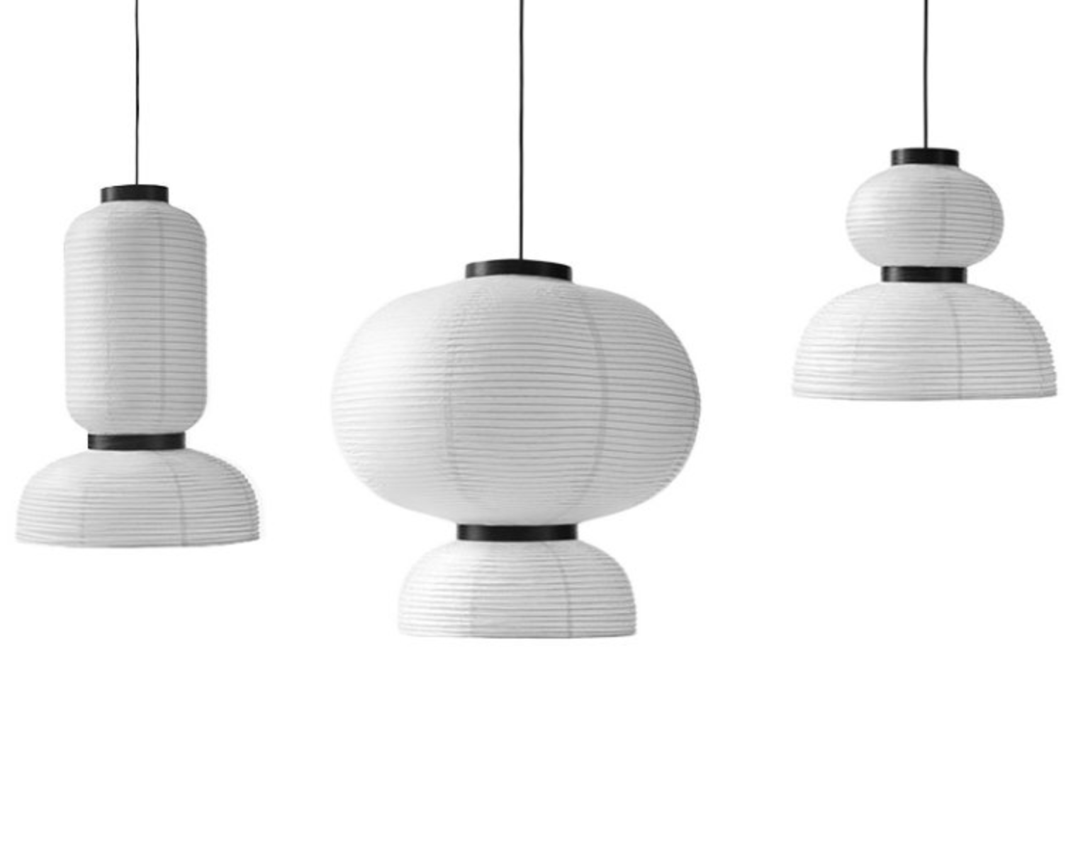 Závěsné svítidlo Formakami je inspirováno tradičními asijskými lucernami a fúzí západní a východní kultury. Rám z černě lakované dubové dýhy je potažen ručně zpracovaným rýžovým papírem v krémově bílé barvě Ivory White v kombinaci s černým textilním kabelem. Vybírat lze ze tří různých tvarů, které je možné mezi sebou kombinovat.