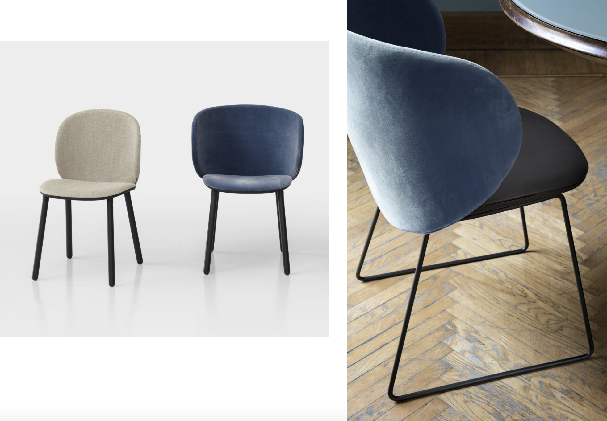 Berlínské studio Läufer & Keichel vytvořilo židli a křeslo pro Kristalii s měkkými, objímajícími liniemi. Židle a křeslo, které jsou k dispozici se základnou posuvného rámu nebo se čtyřmi nohami z masivního dřeva, mohou být čalouněny látkami a kůží.