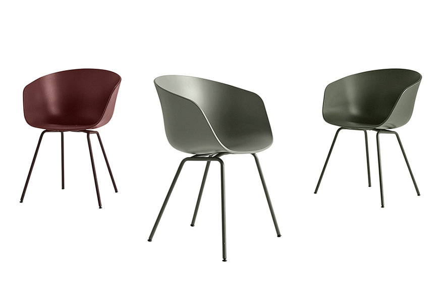 Židle s područkami AAC26 (About A Chair) mají mnoho možností vzhledu. Probarvovaný polypropylenový sedák lze polstrovat zepředu látkami kolekce Kvadrat, nebo kůží Camo. Podnoží se vyrábí buď z leštěného hliníku, nebo lakované. Sedák pro ještě větší pohodlí můžete doplnit snímatelným koženým podsedákem.