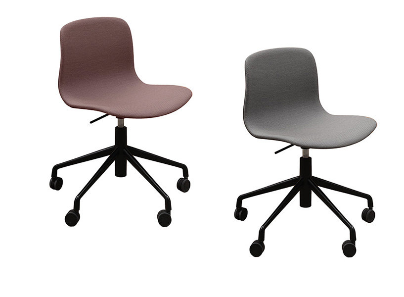 Kolečkové výškově stavitelné židle s plynovým pístem AAC53 (About A Chair) mají mnoho možností vzhledu. Polypropylenový sedák lze polstrovat látkami kolekce Kvadrat, nebo kůží Camo. Podnoží tvaru pěti-cípé hvězdy se vyrábí buď z leštěného hliníku, nebo lakované. Měkká kolečka jsou vhodná pro všechny druhy podlah.
