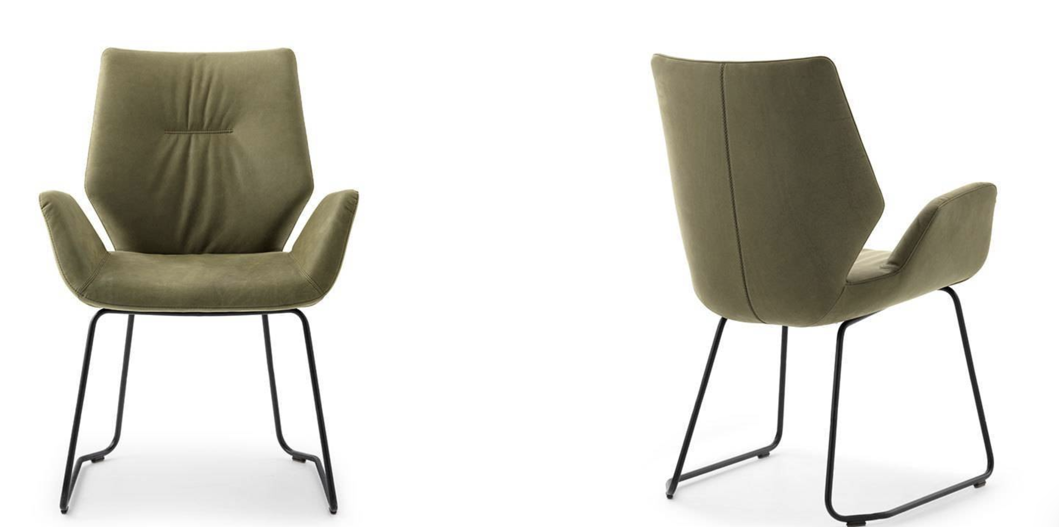 Měkké záhyby, akcent na přední straně, zadní podpěry a krásné dekorativní kontrastní barvy. Smíchání prvků křesla a židle za použití různých tkanin. Každé místnosti dodá hravý dotek.