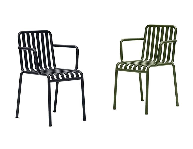 Venkovní židle s područkami Palissade je součástí stejnojmenné kolekce. Přesto, že je vyrobena z pozinkované oceli vhodné pro venkovní užívání, je velmi pohodlná a elegantní. Lze vybírat ze 4 barevných provedení. Kolekce zahrnuje stůl, křesla, lavice či sofa a je možné ji využít i v komerčních a restauračních zařízeních.