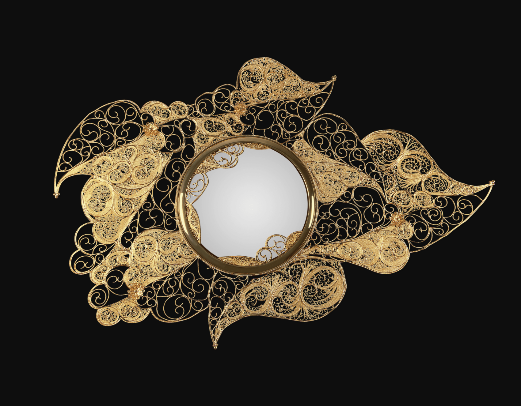 Filigree se uchyluje k jedné z nejstarších známých technik výroby šperků. Kompletně ručně vyrobené, vzkvétá ve tvaru tradičním pro portugalskou kulturu a umění. Toto luxusní zrcadlo, skutečné umělecké dílo, vzdává hold základním hodnotám Boca do Lobo.